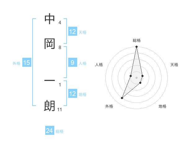 中岡 一朗さんを姓名の画数から五運を鑑定