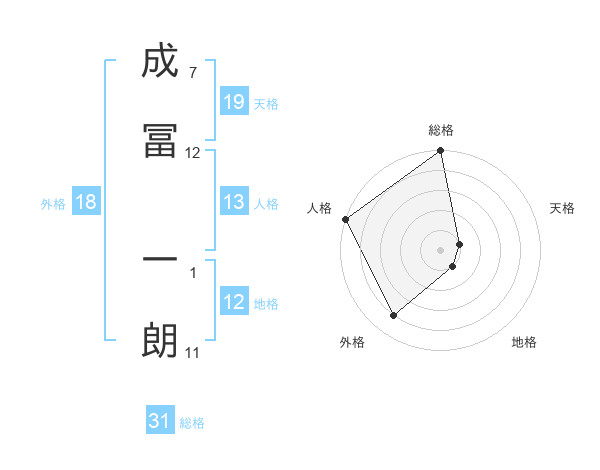 成冨 一朗さんの天格は19画の1点!