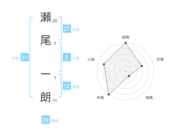 瀬尾 一朗さんの総格は39画の5点!
