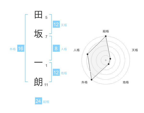 田坂 一朗さんを姓名の画数から五運を鑑定