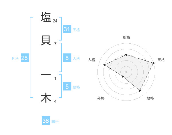 塩貝 一木さんを姓名の画数から五運を鑑定