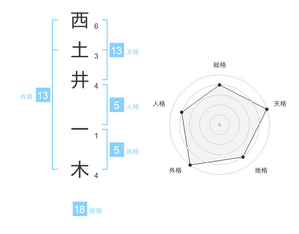 西土井 一木さんの外格は13画の5点!