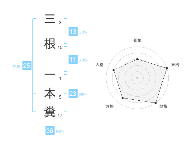 三根 一本糞さんを姓名の画数から五運を鑑定