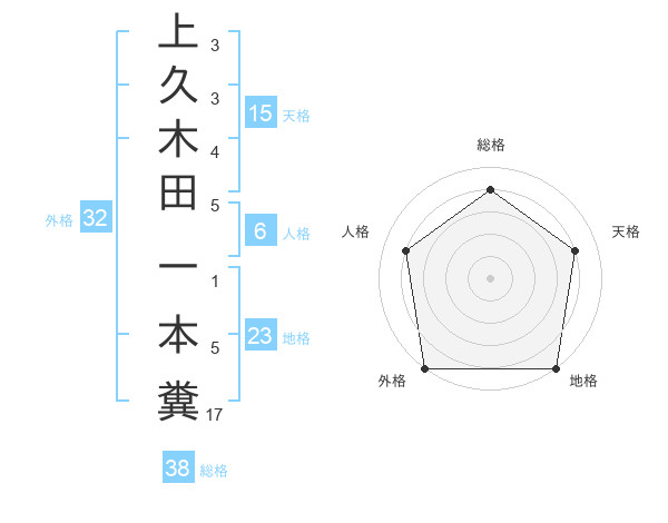 上久木田 一本糞さんを姓名の画数から五運を鑑定