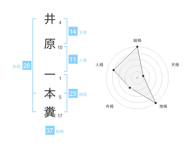 井原 一本糞さんを姓名の画数から五運を鑑定
