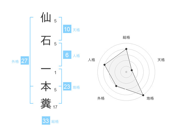 仙石 一本糞さんを姓名の画数から五運を鑑定