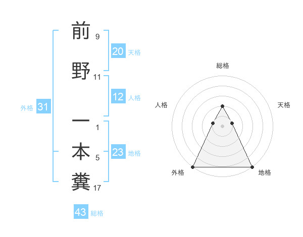 前野 一本糞さんを姓名の画数から五運を鑑定