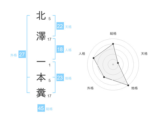 北澤 一本糞さんを姓名の画数から五運を鑑定