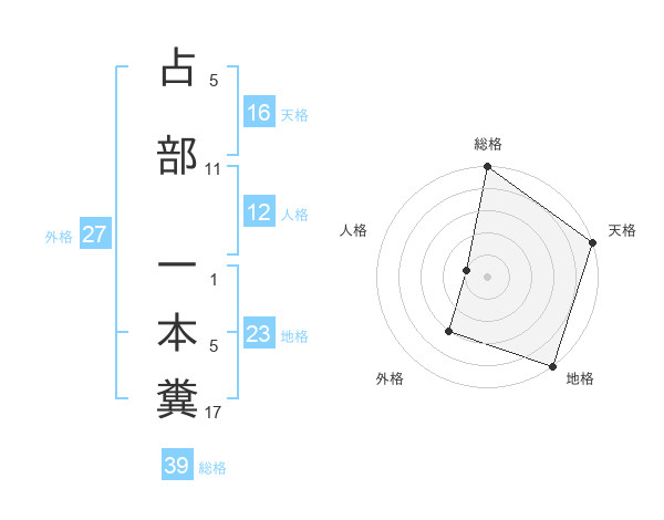 占部 一本糞さんの天格は16画の5点!