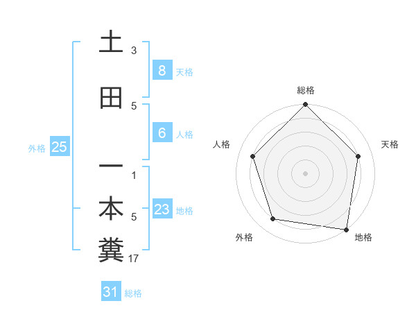 土田 一本糞さんを姓名の画数から五運を鑑定