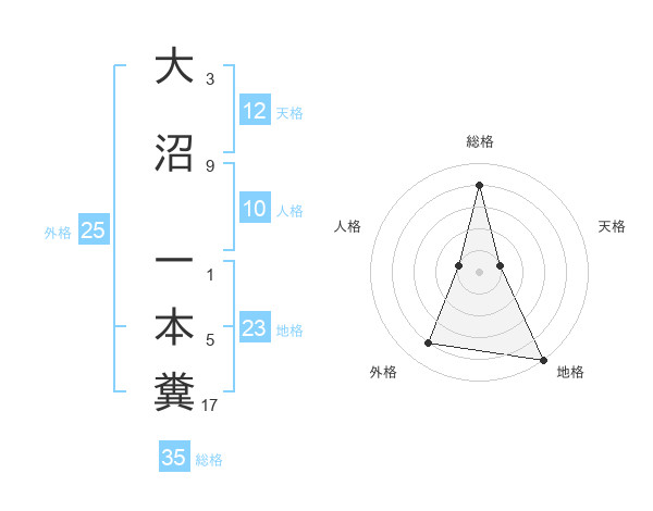 大沼 一本糞さんを姓名の画数から五運を鑑定