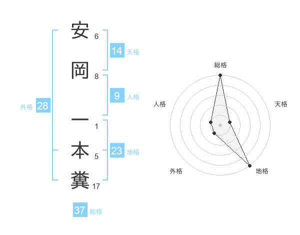 安岡 一本糞さんを姓名の画数から五運を鑑定