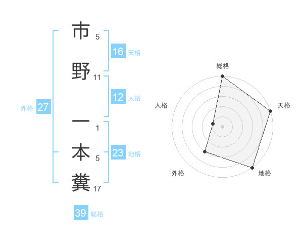 市野 一本糞さんを姓名の画数から五運を鑑定