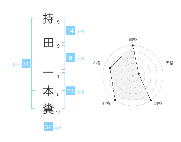 持田 一本糞さんを姓名の画数から五運を鑑定