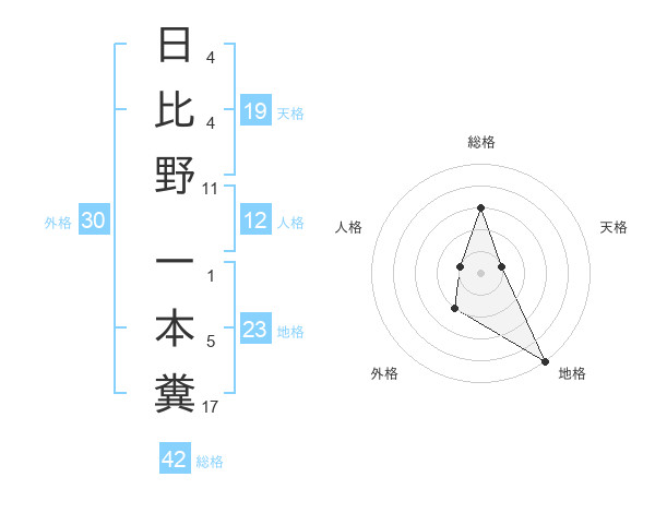 日比野 一本糞さんを姓名の画数から五運を鑑定
