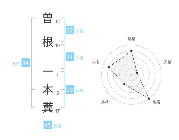 曽根 一本糞さんの総格は45画の4点!