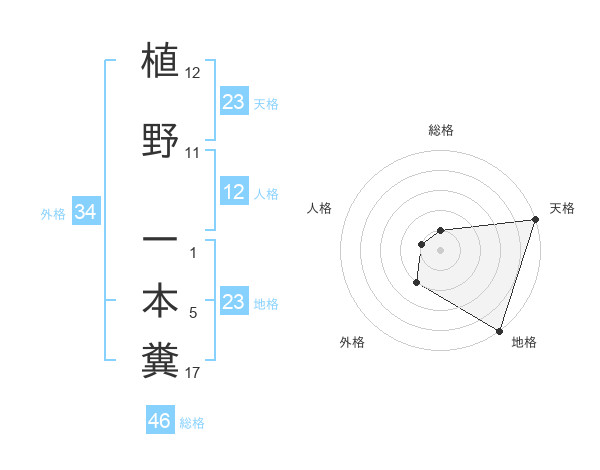 植野 一本糞さんを姓名の画数から五運を鑑定
