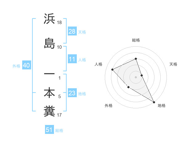 浜島 一本糞さんを姓名の画数から五運を鑑定