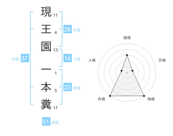 現王園 一本糞さんを姓名の画数から五運を鑑定
