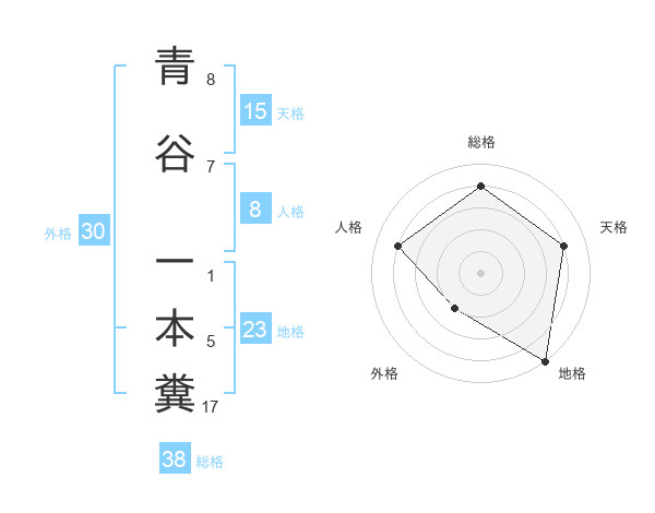 青谷 一本糞さんの総格は38画の4点!
