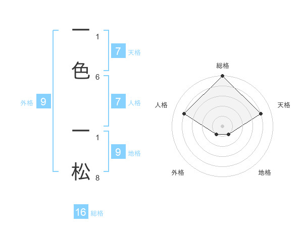 一色 一松さんの総格は16画の5点!