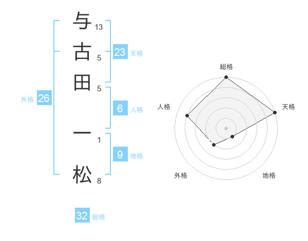 与古田 一松さんの天格は23画の5点!