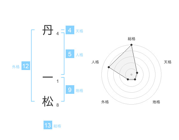 丹 一松さんの総格は13画の5点!