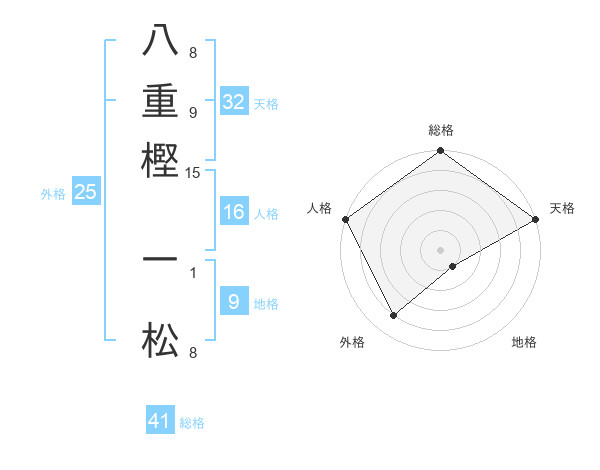 八重樫 一松さんの総格は41画の5点!
