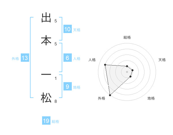 出本 一松さんの外格は13画の5点