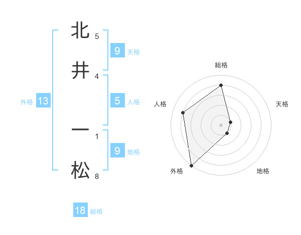 北井 一松さんの外格は13画の5点!