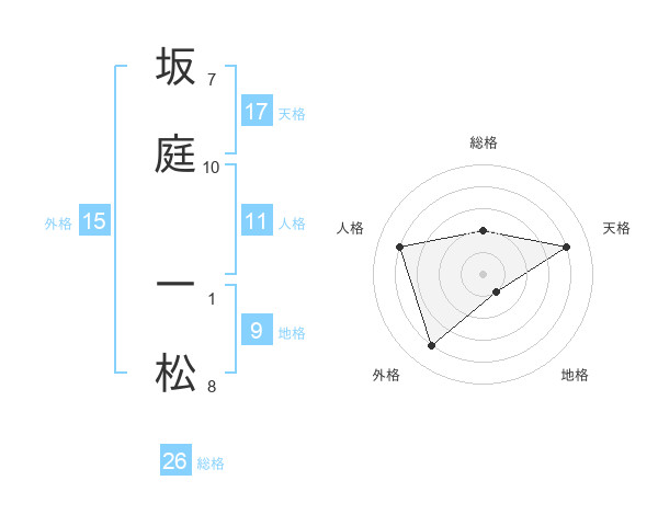 坂庭 一松さんを姓名の画数から五運を鑑定