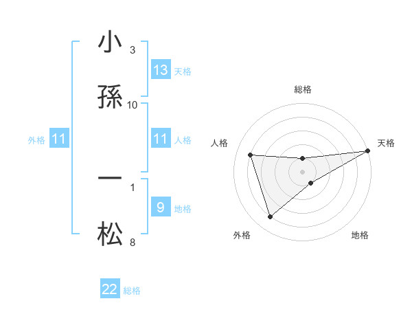 小孫 一松さんの外格は11画の4点!