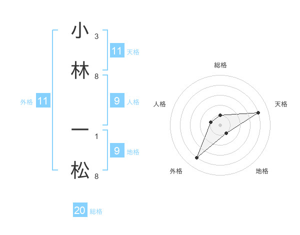 小林 一松さんの総格は20画の1点!