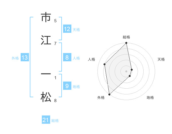 市江 一松さんの外格は13画の5点!