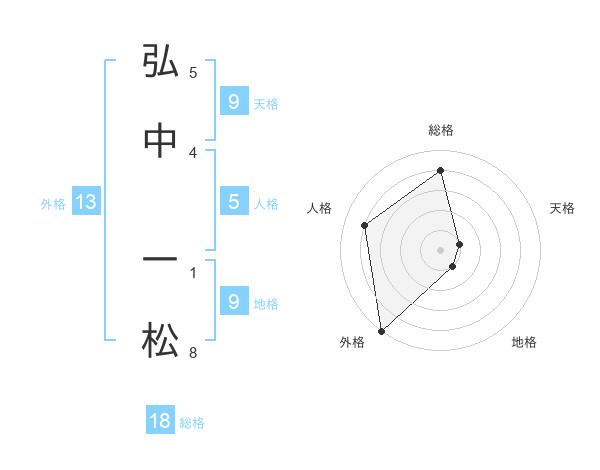 弘中 一松さんの外格は13画の5点!