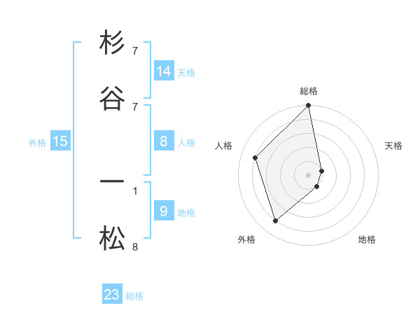 杉谷 一松さんを姓名の画数から五運を鑑定