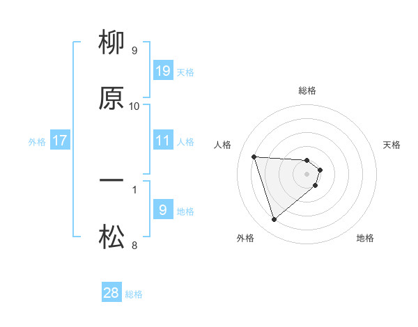 柳原 一松さんの外格は17画の4点!
