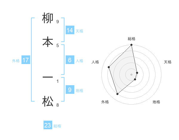 柳本 一松さんの総格は23画の5点!