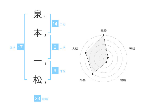 泉本 一松さんの総格は23画の5点!