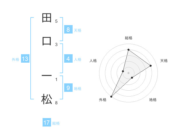 田口 一松さんの外格は13画の5点!