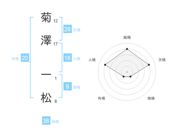 菊澤 一松さんを姓名の画数から五運を鑑定