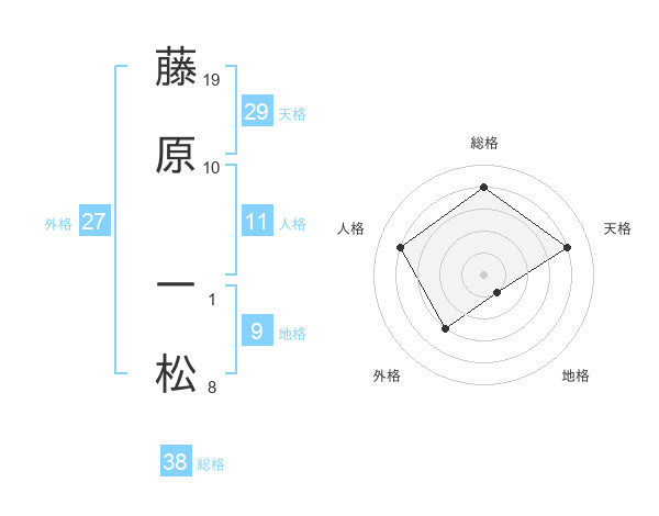 藤原 一松さんの総格は38画の4点!