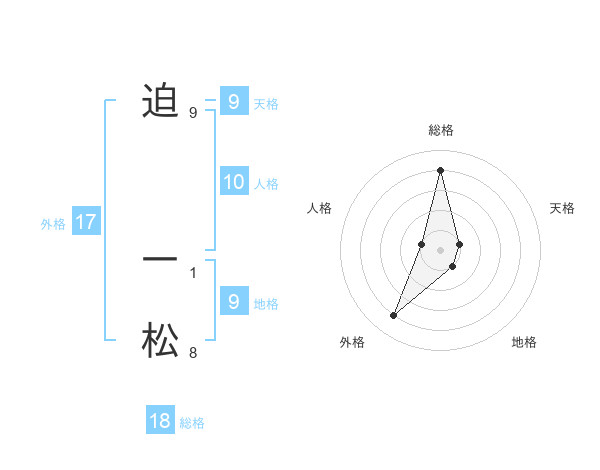 迫 一松さんの総格は18画の4点!
