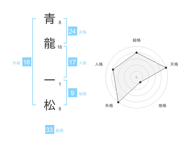 青龍 一松さんの総格は33画の4点!