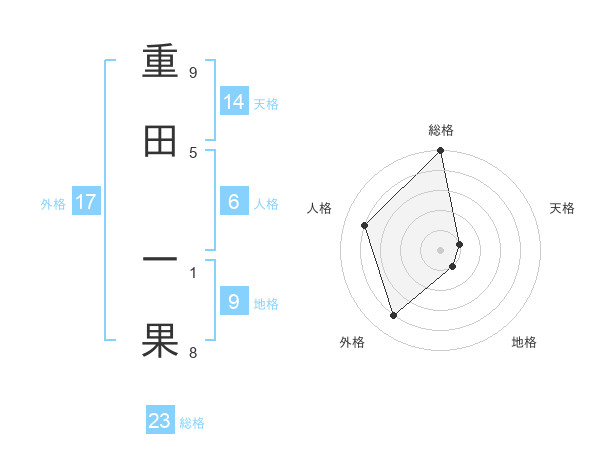重田 一果さんの総格は23画の5点!