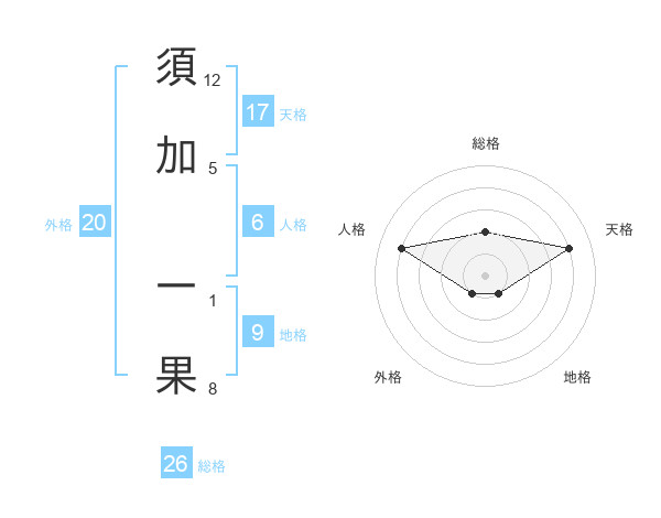 須加 一果さんの総格は26画の2点