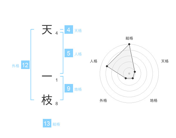 天 一枝さんの総格は13画の5点!
