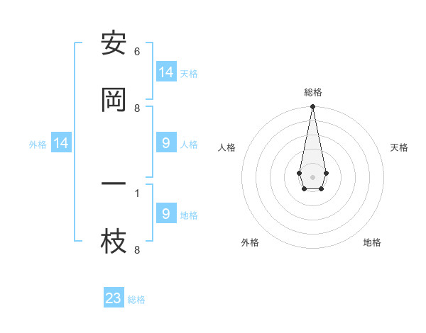 安岡 一枝さんの総格は23画の5点!