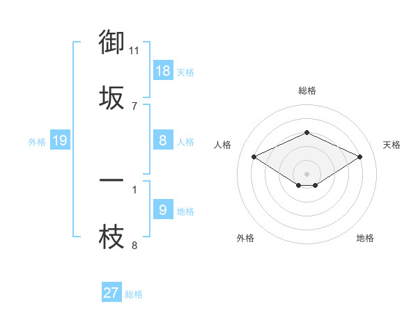 御坂 一枝さんを姓名の画数から五運を鑑定
