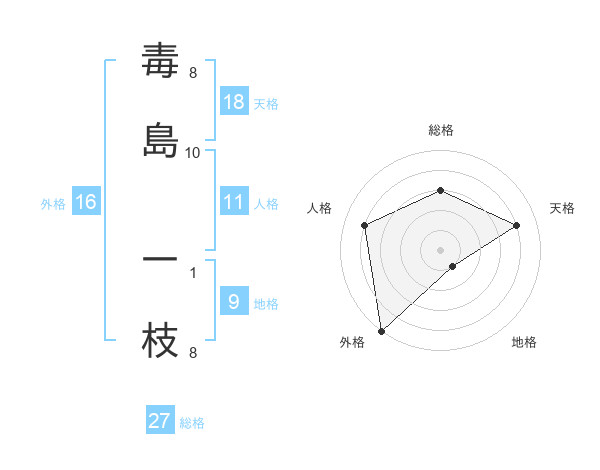 毒島 一枝さんの総格は27画の3点!
